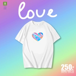 OK Apparel เสื้อยืดคอกลม ลายหัวใจสีรุ้ง Special Edition ผ้าคอนตอน USA100% OVERSIZE