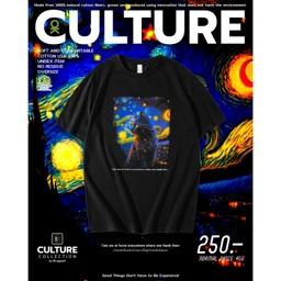 new คอลเลกชันculture ลายแมวvangogh - Oversize