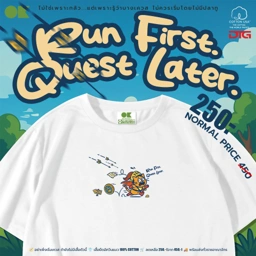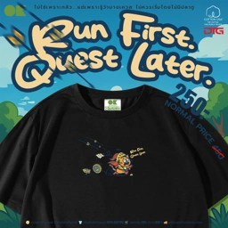 OK Apparel เสื้อยืดคอกลมแขนสั้น ลาย Run first quest later Oversize Cotton ⚡️USAคุ้มสุด!⚡️